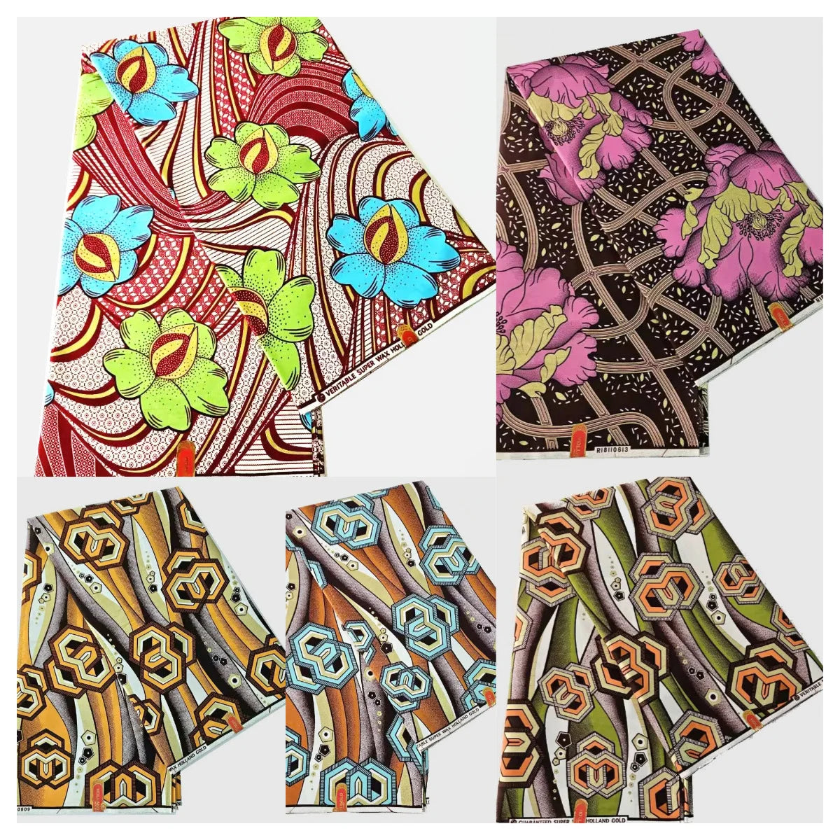 5 Patterns Available,100% Cotton Batik Fabric with African Wax Print for DIY Sewing Summer Clothing Sofa-6 Yards Long R1118